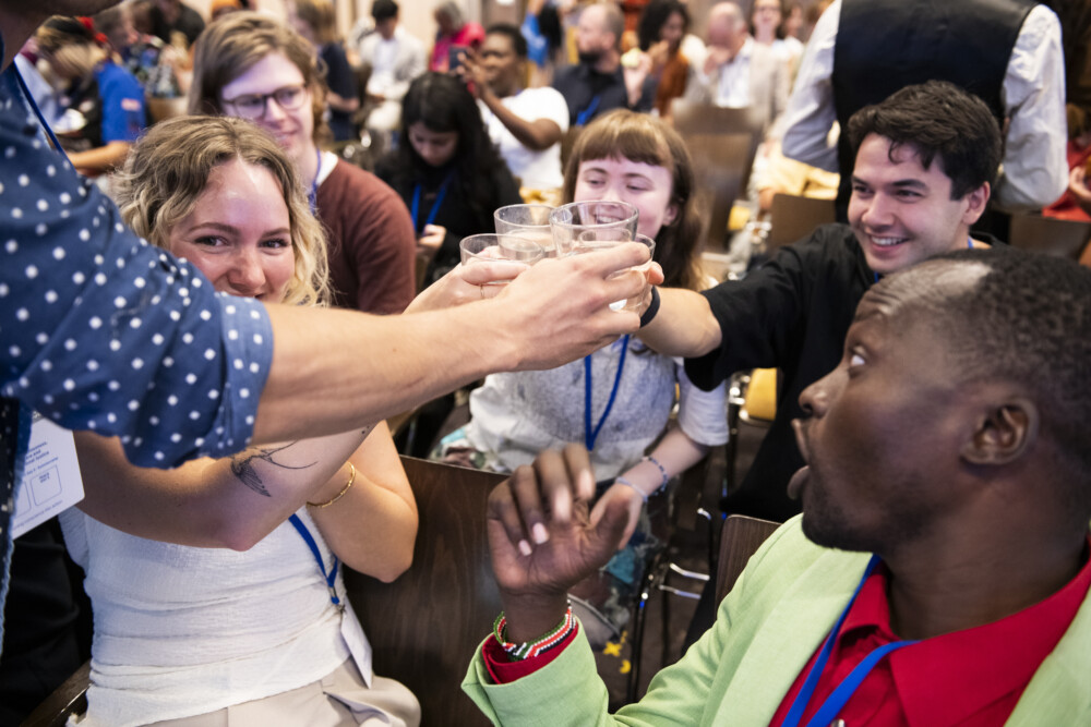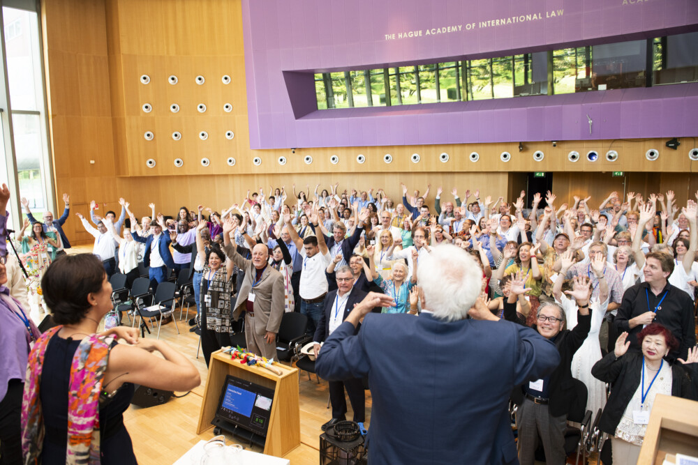 Van congres naar feestelijke avond op het strand • Van Vredespaleis naar bosrijk Landgoed • Elke dag een andere toonaangevende locatie • Dag 2 in het Vredespaleis • 340 deelnemers uit 35 landen • Levendige energie en diepe verbondenheid • Vliegwiel | het jubileum heeft 18 nieuwe affiliates voortgebracht • 14x muzikale optredens, exposities en kunst • 75% van de bezoekers was internationaal • Internationale Samenwerking en Duurzame Ontwikkeling