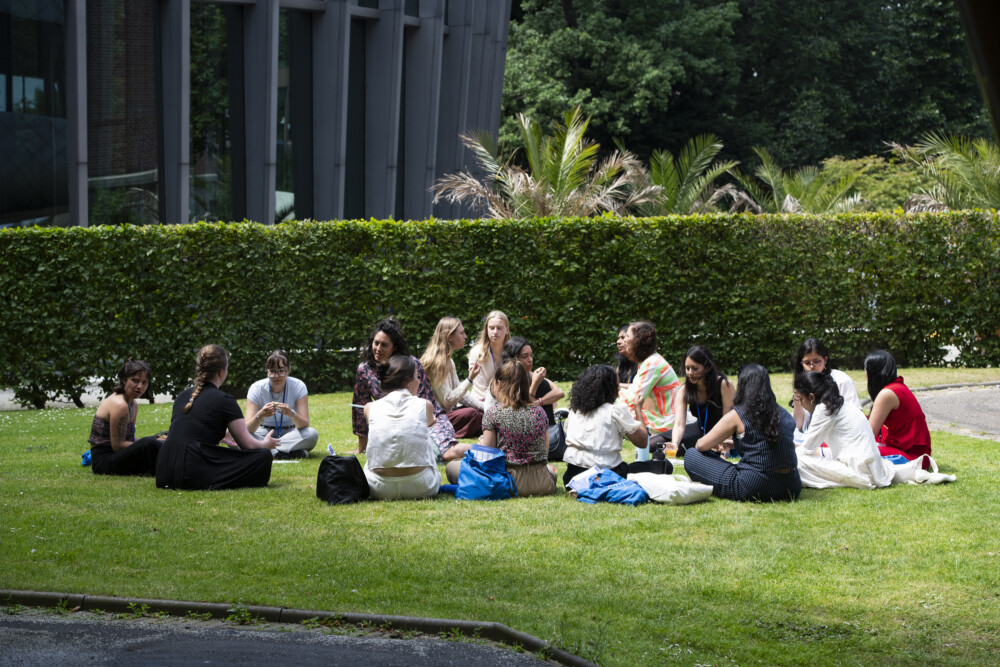 - Na een plenaire dag alle deelnemers voor het Vredespaleis op een groepsfoto krijgen tussen de regen- en onweersbuien door. Niet is zo veranderlijk als het Nederlandse weer…