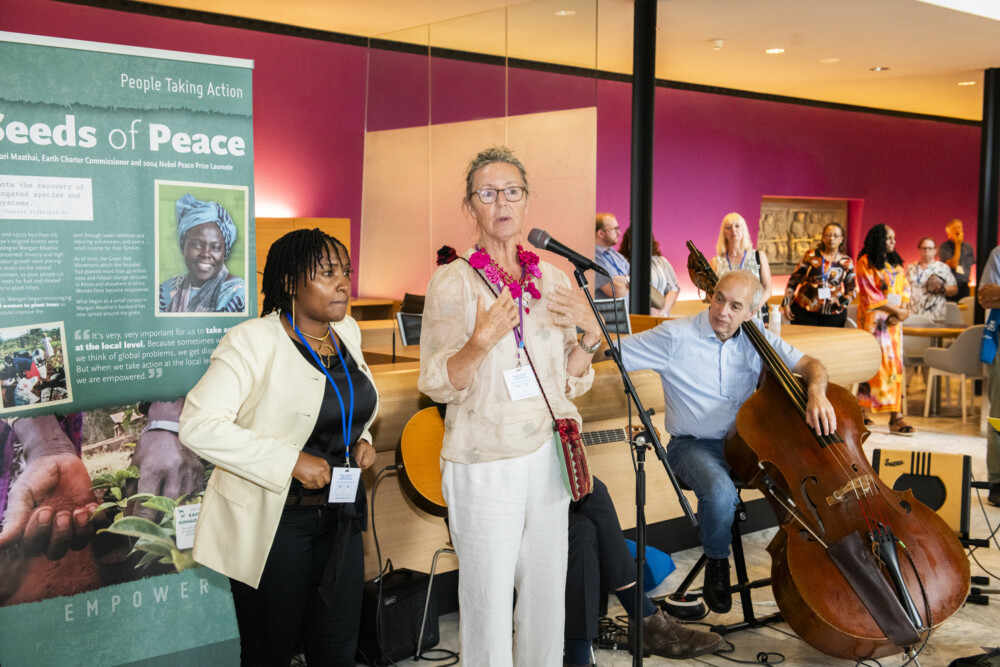 Een volledige dag in het Vredespaleis. Om 8.45 uur werden de gasten verwacht bij de security, waar men doorheen moest omdat het Vredespaleis zich op internationaal grondgebied bevindt. Uiteraard kon men vlot door naar de lobby om elkaar te ontmoeten onder het genot van een warme drank. Naast een opening en afsluiting van de dag werden bezoekers meegenomen aan de hand van de vier pijlers van het Earth Charter. Een inspirerende dag met toonaangevende sprekers, waarbij veel interactieve onderdelen zorgden voor luchtigheid gedurende de plenaire zitting. De gehele dag door kon men genieten van een drietal (actieve) exposities. Een groepsfoto van deze internationale doelgroep voor het Vredespaleis mocht niet ontbreken, juist ook omdat deze mensen zich inzetten voor vrede en een betere wereld. Men kon hierna genieten van een walking diner met achtergrondmuziek van een jazzband. - Dag 3 | Landgoed Zonheuvel, Doorn